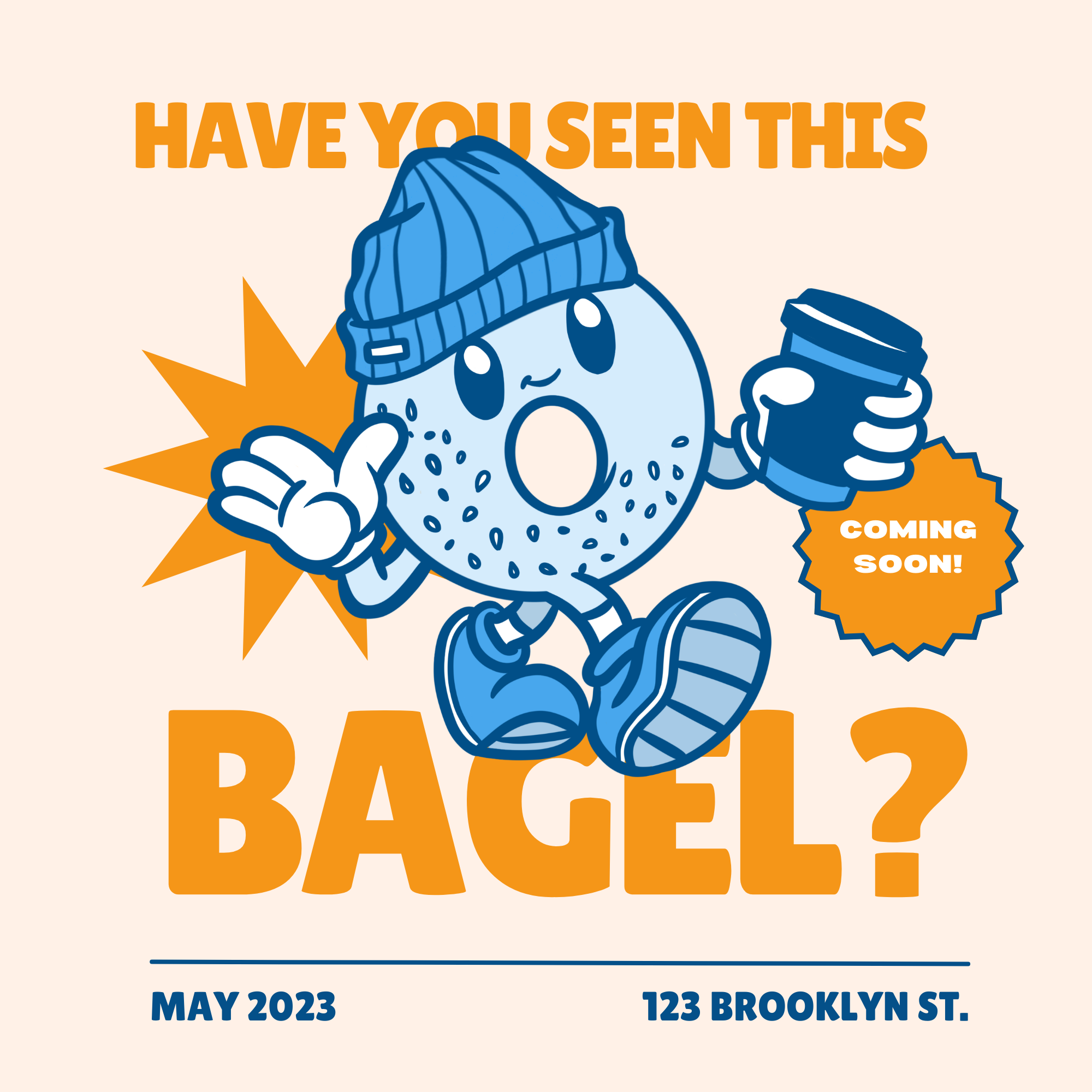Benji’s beanie and coffee cup hint at the everyday rituals that make bagel runs special, whilst his energetic stance and bold colour palette embody the brand’s confident “local favourite” attitude. He’s a walking invite to grab a bagel, sip a coffee, and join the fun!
