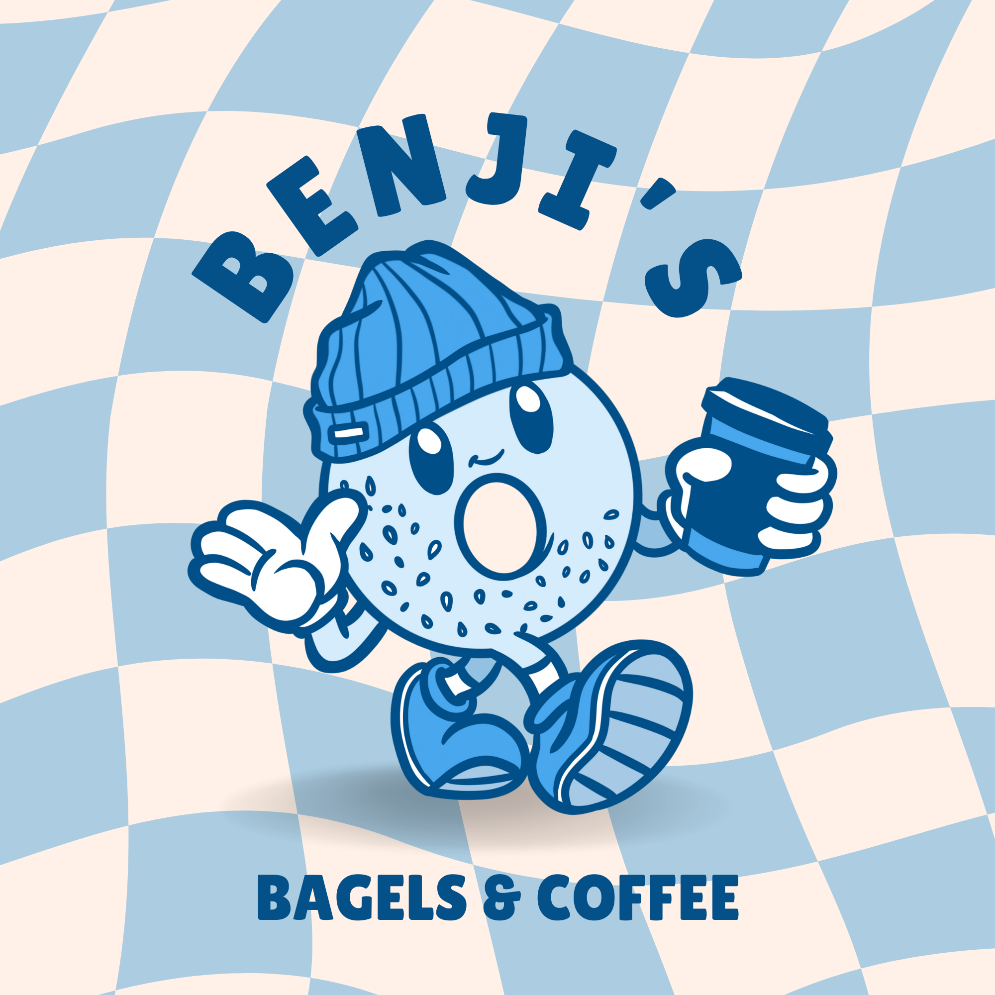Meet Benji — the cool, new bagel in town. Designed as the face of Benji’s Bagels & Coffee, this cheerful character captures the brand’s fun, approachable energy with a playful retro twist.